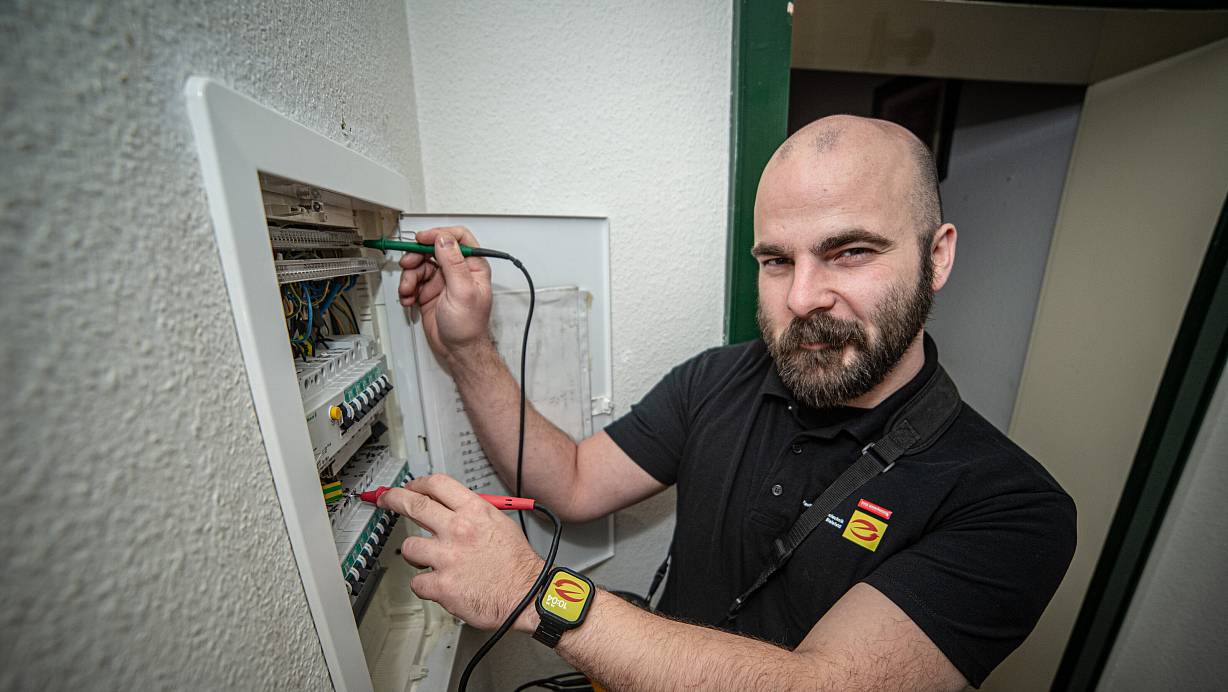 Innungsmeister Maximilian Schröder fährt an den Feiertagen gerne Notdienst. Manch ein Problem könne zuhause selbst gelöst werden, sobald es hinter die Abdeckung vom Sicherungskasten geht muss aber der Profi dran. | © Felix Brenneke
