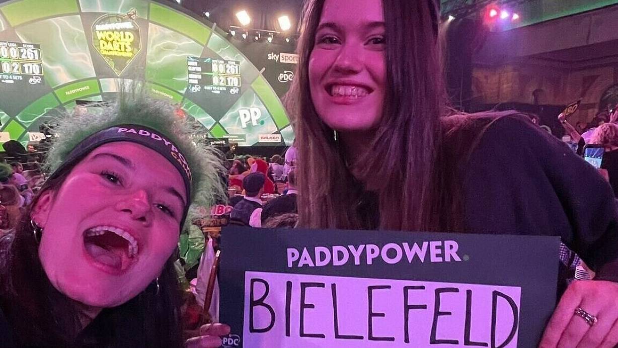 Mias und Ellas Statement über Bielefeld ging bei der Darts-WM in London viral