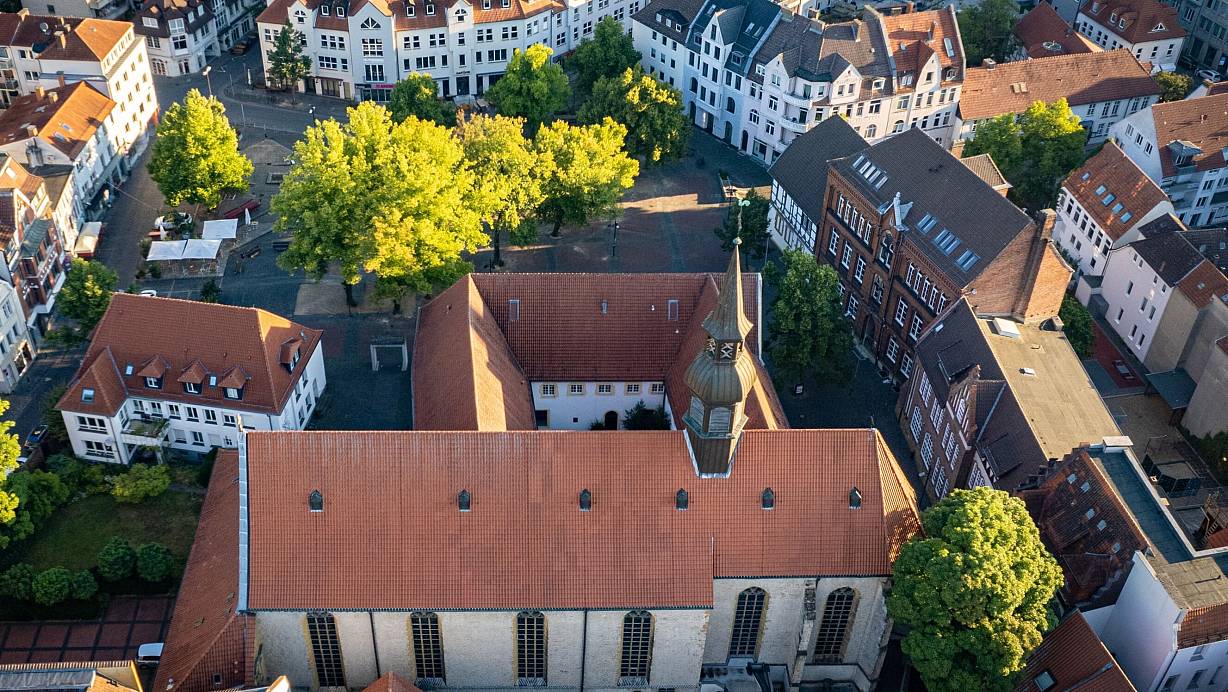 Der Klosterplatz in der Bielefelder Innenstadt ist vormittags gleichzeitig öffentliche Fläche und Schulhof. | © Mike-Dennis Müller / www.mdm.photo