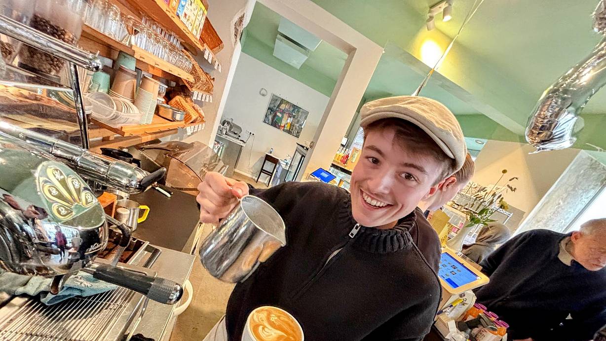 Johann Meyer ist Barista in der "Haltestulle", wo es sich besonders gut in Bioqualität und regional frühstücken lässt. | © Eike J. Horstmann