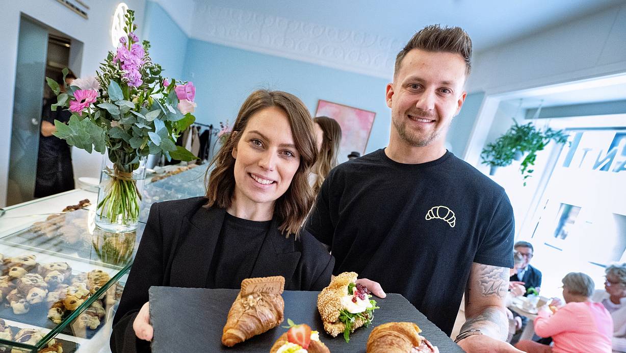 Viviana Demme und Nino vom Hofe sind die Chefs von "Madame Croissant" in Bielefeld, das dem Franchise-Konzept um ein Café erweitert. | © Barbara Franke