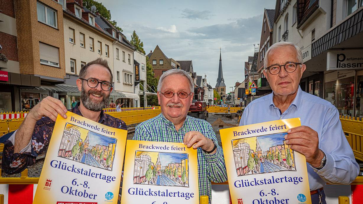 Im Vorjahr können Danny Hoogenboom (v.l.), Karl-Uwe Eggert und Johannes Kruse noch entspannt für die Glückstalertage werben. Jetzt werden neue Organisatoren gesucht. | © Mike-Dennis Müller