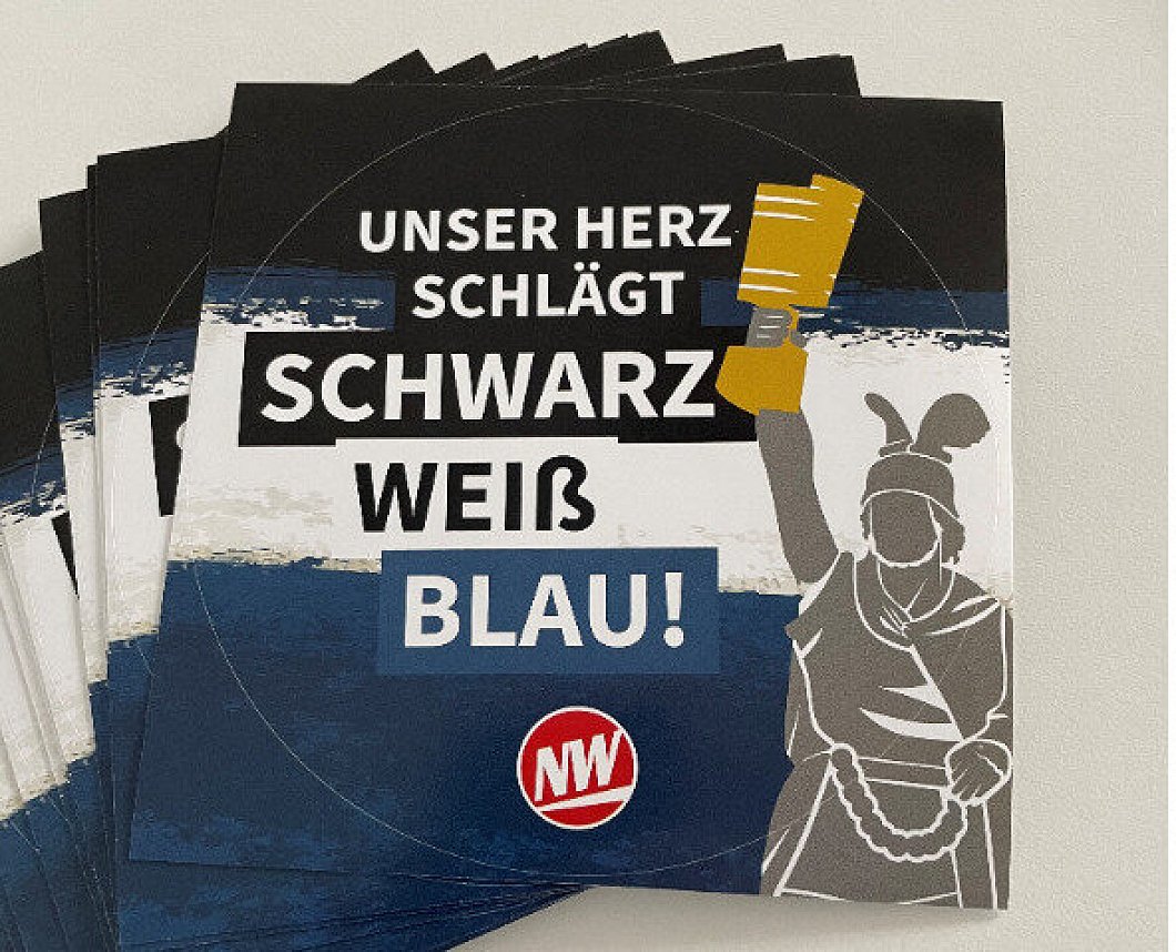 Auch die „Neue Westfälische“ bietet zum Bielefelder Pokalfinale kostenlose Aufkleber und Klatschpappen in den Arminia-Vereinsfarben Schwarz-Weiß-Blau an. Beides ist ab Freitag, 9. Mai, ab 10 Uhr in der Bielefelder Geschäftsstelle an der Niedernstraße erhältlich.