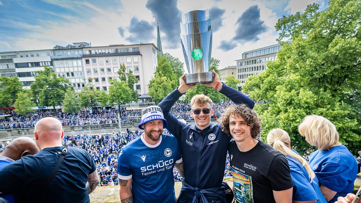 Arminia Bielefelds Balkonparty: Tausende feiern die Sieger der Herzen
