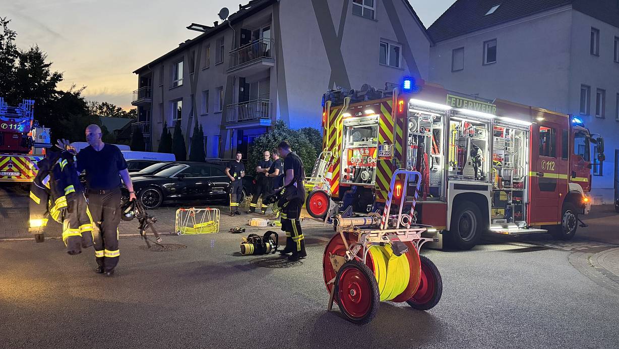 Die Meller Straße war während des Einsatzes für etwa eine Stunde voll gesperrt. Die Bewohner des Mehrfamilienhauses eilten auf die Straße.