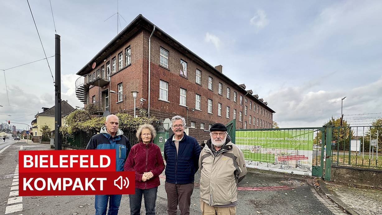 Michael Jürgens (v.l.), Carola Poly, Heinrich Voß und Andreas Bock von der Nachbarschaftsinitiative der Rochdale-Kaserne (hinten) sind enttäuscht und doch zuversichtlich. Sie sehen Bielefeld als Sonderfall. | © Neue Westfälische