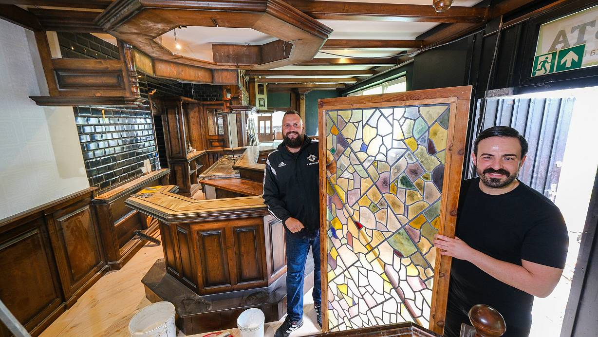 Dunkles Holz, polierte Flächen und Glas in Jugendstil-Optik: Johnathon Palmer (l.) und Ferhat Kali haben das Interieur ihres Pubs zusammen mit irischen Experten entworfen. | © Andreas Zobe