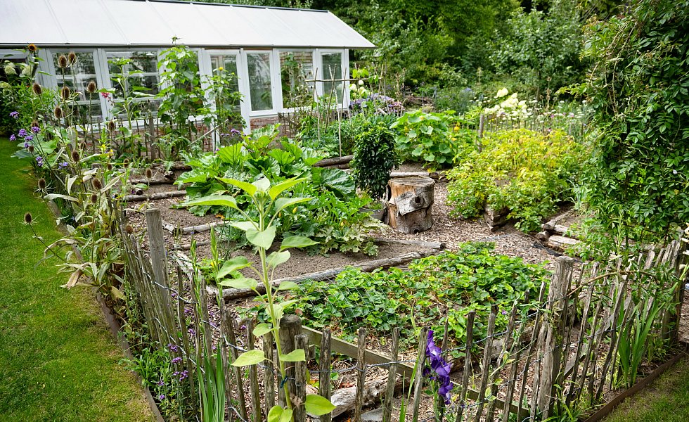 „Er soll später wie ein Bauerngarten aussehen, mit einem Staketenzaun, an dem Stockrosen und Gladiolen wachsen. „Das erinnert mich an meine Kindheit in Enger“, sagt die dreifache Mutter, die jede freie Minute im Garten verbringt. „Mir ist wichtig, dass unsere Kinder lernen, woher die Nahrungsmittel kommen.“ Schon jetzt leuchten Sonnenblumen mit Eisenkraut, Gladiolen und Karden um die Wette.