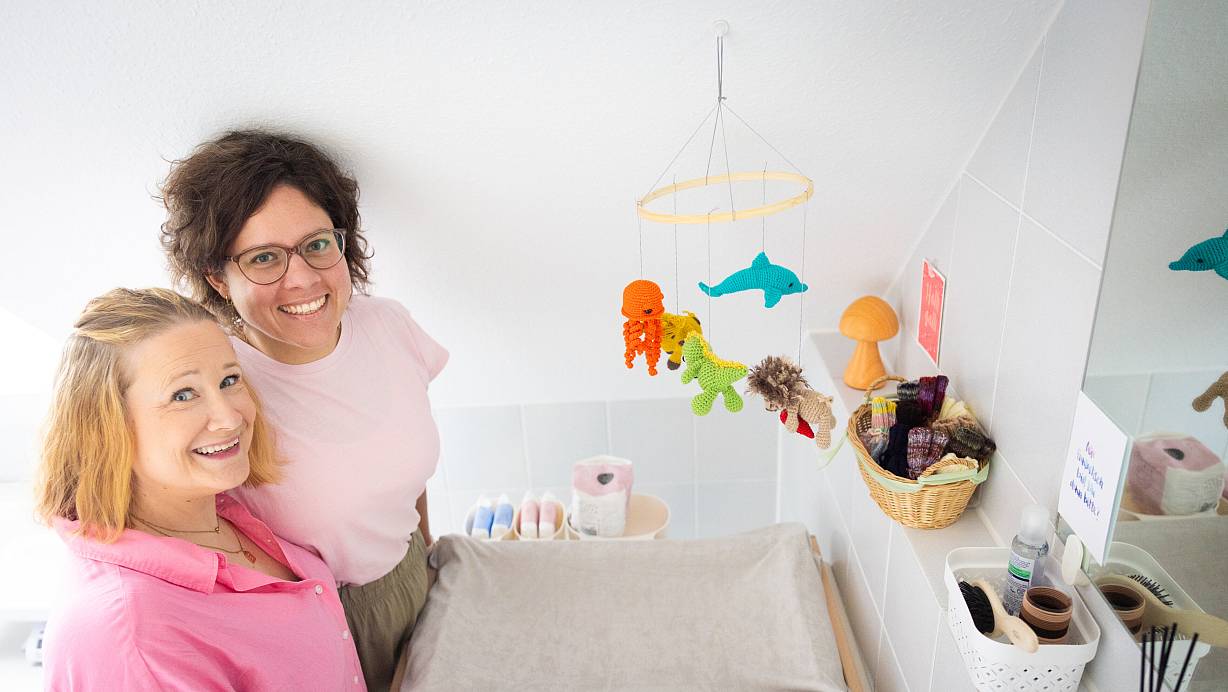 Kindersöckchen und ein Mobilé: Julia Wüste (l.) und Alexandra Münstermann sorgen für eine entspannte Atmosphäre. | © Mike-Dennis Müller / www.mdm.photo