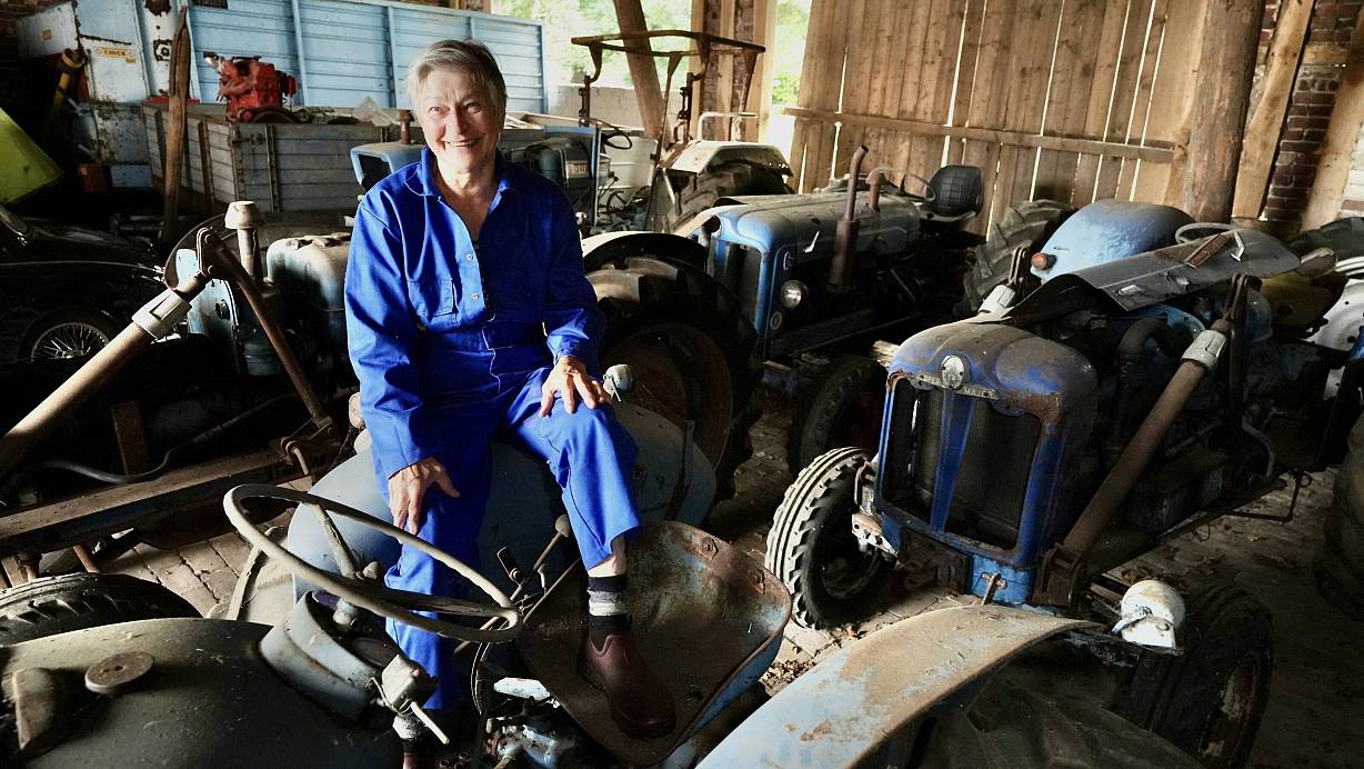 Marianne Lütkehölter sitzt auf einem der Ford-Oldtimer-Trecker, die ihr verstorbener Mann gesammelt hat. | © Peter Unger