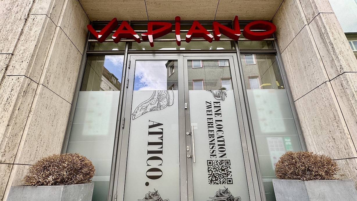Der neue Schriftzug klebt schon auf den Fenstern des ehemaligen Vapiano am Niederwall in Bielefeld. Das Restaurant "Attico." zieht ein. Aber nicht alleine. | © Peter Unger