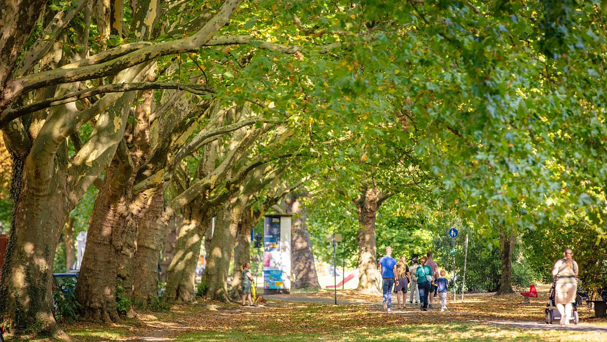 Auch im Grünzug unter den mächtigen Platanen soll die Lutter künftig offen plätschern dürfen – zumindest ein Teil davon. Die Baumallee soll dafür nicht angetastet werden. | © Mike-Dennis Müller