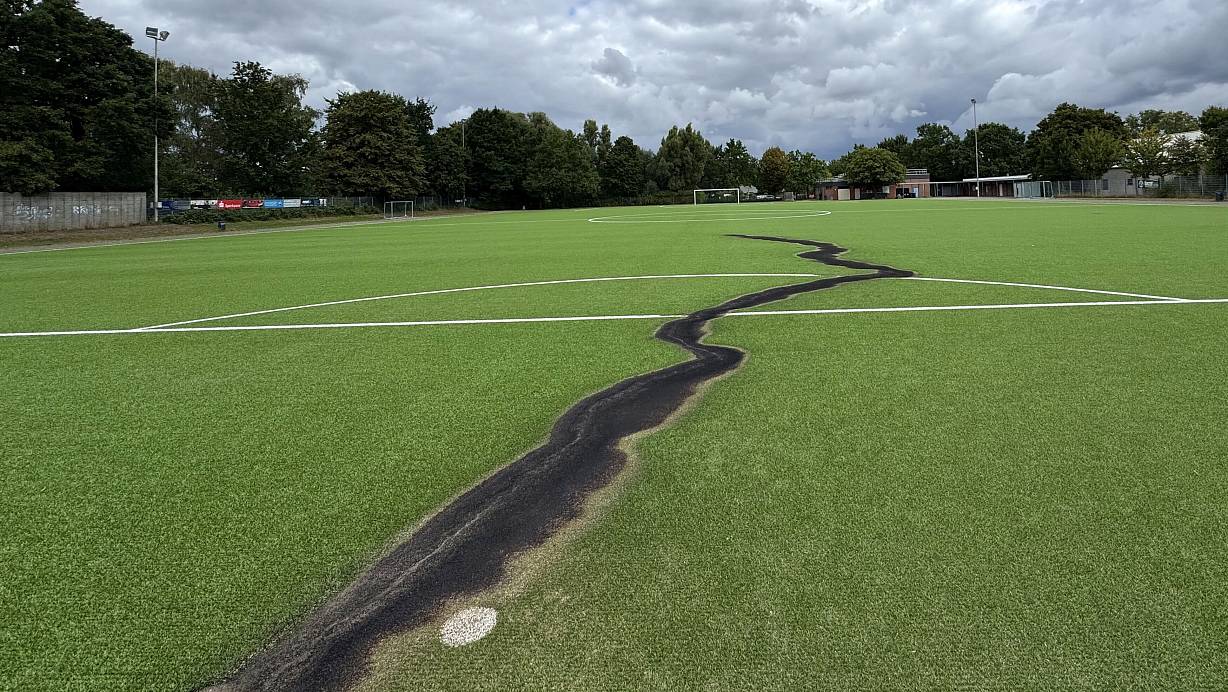Die Zerstörung des Kunstrasens beschränkt sich zum Glück nur auf eine Platzhälfte. | © Paul Brinkmann