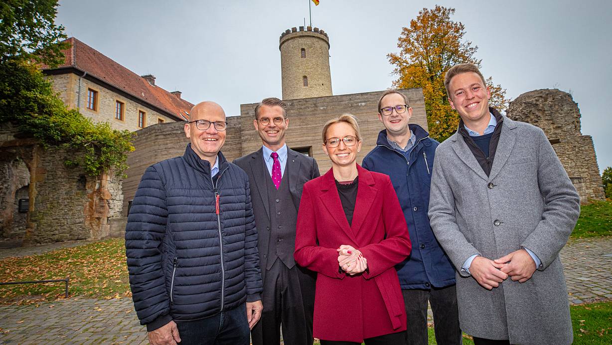 Begingen den Tag der Deutschen Einheit auf der Sparrenburg: Ralph Brinkhaus (v.l.), Johann-Christoph Meyer zu Bentrup, Christiana Bauer, Steve Kuhlmann und Tom Brüntrup. | © Mike-Dennis Müller