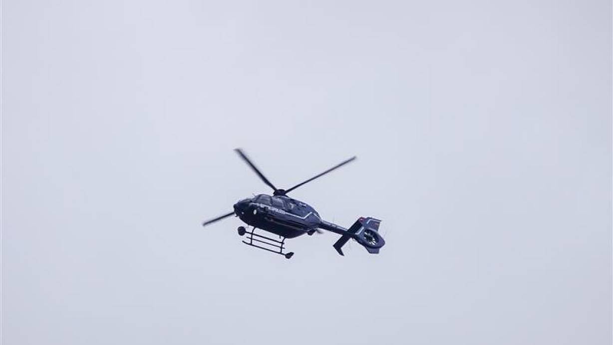 Polizei-Hubschrauber kreist über Bielefeld und begleitet Schalke-Fans zum Spiel