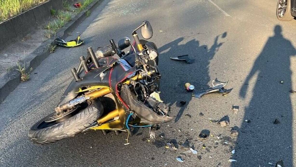 Der Fahrer dieser Kawasaki Ninja wurde bei einem Unfall auf der Herforder Straße in Bielefeld schwer verletzt. | © Polizei Bielefeld