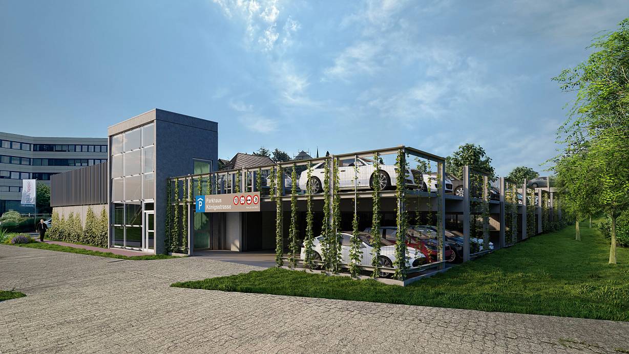 Blick vom untersten Bereich des Parkdecks in Richtung Bethel-Hauptverwaltung und Königsweg. So soll die neue Anlage einmal aussehen. | © Bethel