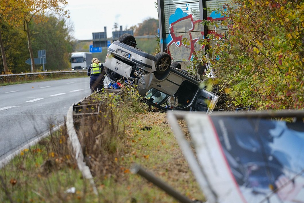 Bielefeld. Ein VW-Golf-Fahrer (59) hat sich am Montagmittag, 3. November, mit seinem Fahrzeug auf der Bielefelder Stadtautobahn überschlagen. Er zog sich so schwere Verletzungen zu, dass ihn eine Rettungswagenbesatzung versorgen und ins Krankenhaus bringen musste. Der Ostwestfalendamm (OWD) in Richtung A33 musste voll gesperrt werden.