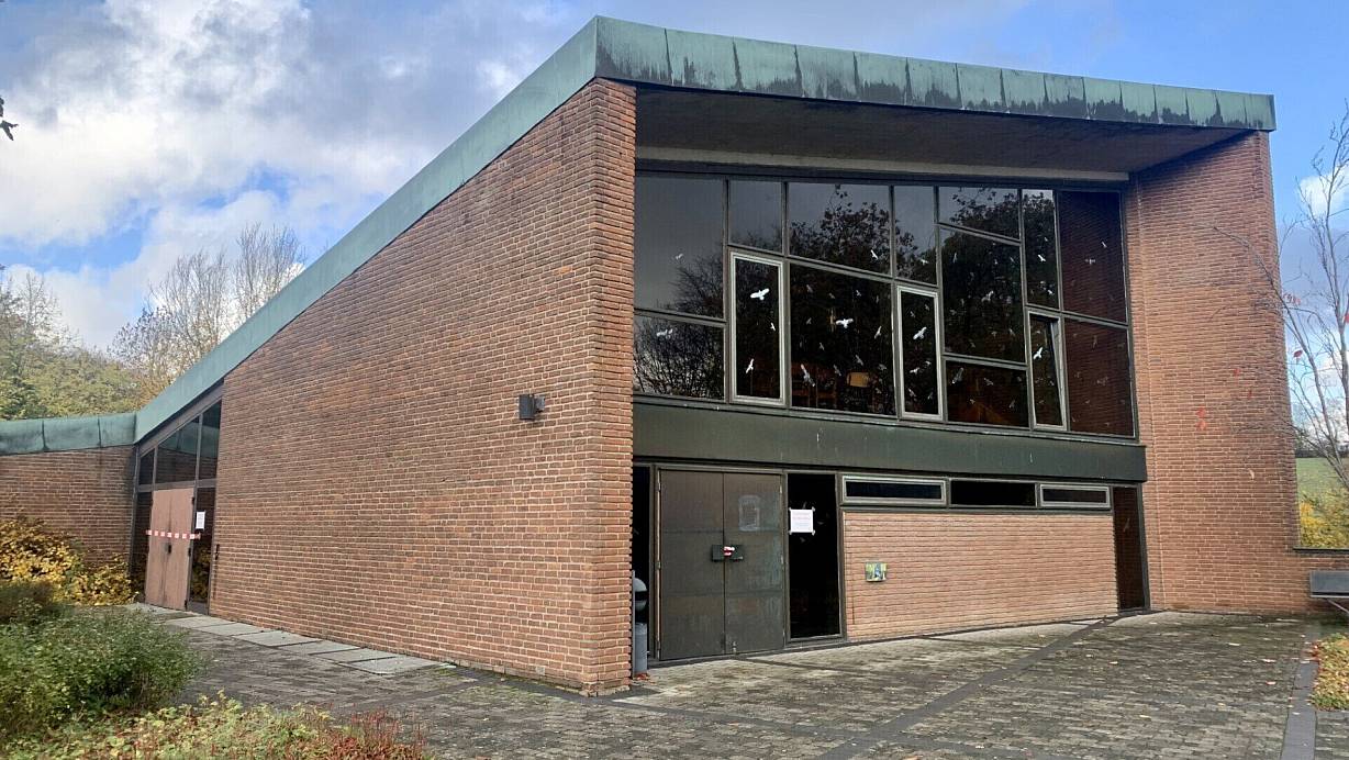 Das grüne Kupferdach der 1970 erbauten, rot geklinkerten Kirchdornberger Friedhofskapelle ist undicht und möglicherweise nicht mehr tragfähig. | © Ivonne Michel