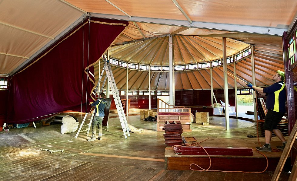 Und wenn wir schon beim Frieren sind: Das braucht niemand. Ebenerdig wird ein Rohrleitungssystem verlegt, das wohlige Wärme verbreitet – ein Zelt mit Fußbodenheizung! Am kommenden Mittwoch, 12. November, geht’s los im Spiegelzelt mit der Premiere von „Weiber 2.0“ - der Mädelsabend geht weiter“. Ein Wiedersehen mit den drei liebenswerten Freundinnen Anke, Bärbel und Claudia. Sie waren schon im letzten Jahr im Ravensberger Park zu Gast. Jetzt stürzen sie sich in ein neues urkomisches amouröses Abenteuer.