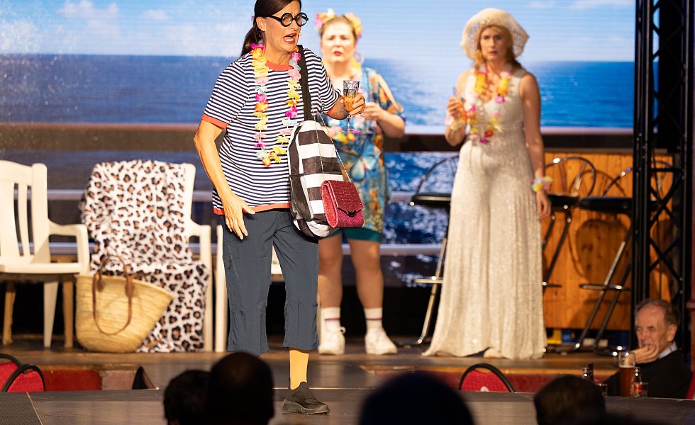Die drei „Weiber“ haben es nicht leicht auf dem Dampfer „Brio Solar“, die Hormone feiern zwar Karneval, aber die Pheromone entfachen wohl nicht die notwendige Anziehungskraft bei Miguel (Joshua Edelsbacher) – irgendetwas stimmt nicht mit dem Kerl. Liegt es daran, dass die Mädels nicht mehr ganz „taufrisch“ sind, wie der Kreuzfahrt-Steward bemerkt?