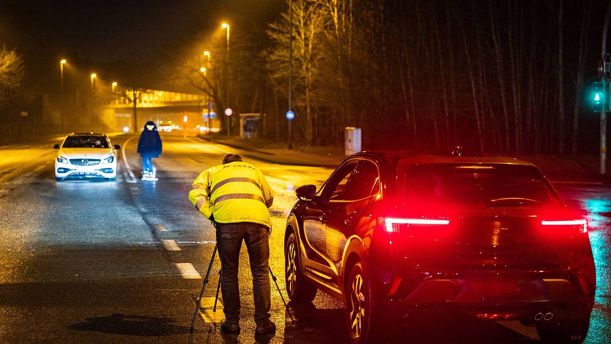 Ein Lichtgutachter von der Dekra Bielefeld misst nach einem schweren Verkehrsunfall die Sichtbarkeit eines dunkel gekleideten Fußgängers. | © Symbolfoto: Mike-Dennis Müller