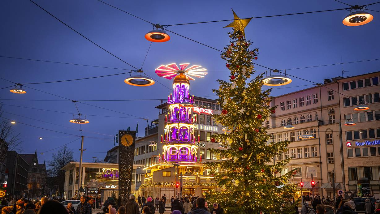 Die 23,52 Meter hohe Weihnachtspyramide ist ein Highlight des Bielefelder Weihnachtsmarkts. Nun ist sie zurück auf dem Jahnplatz. So läuft der Aufbau.