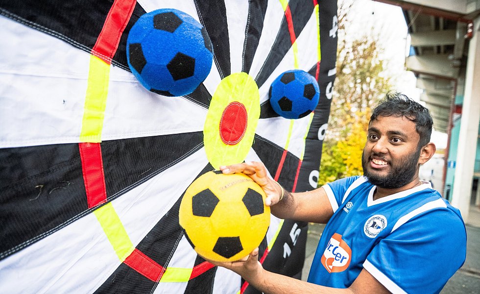 Beim Stand der Anlaufstelle „Sichere Burg“ schepperte es gewaltig beim Dosenwerfen und wer Lust auf Fußball hatte beim Zweitligisten, durfte bei der Fußballschule Arminia um Pylonen tänzeln.
