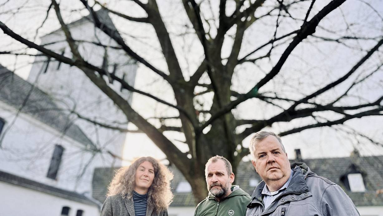 Die Roteiche muss gefällt werden. Diese Nachricht verkündeten (v.l.) Valentina Dopheide, Miachel von Hoff und Michael Luchte. | © Stefan Becker