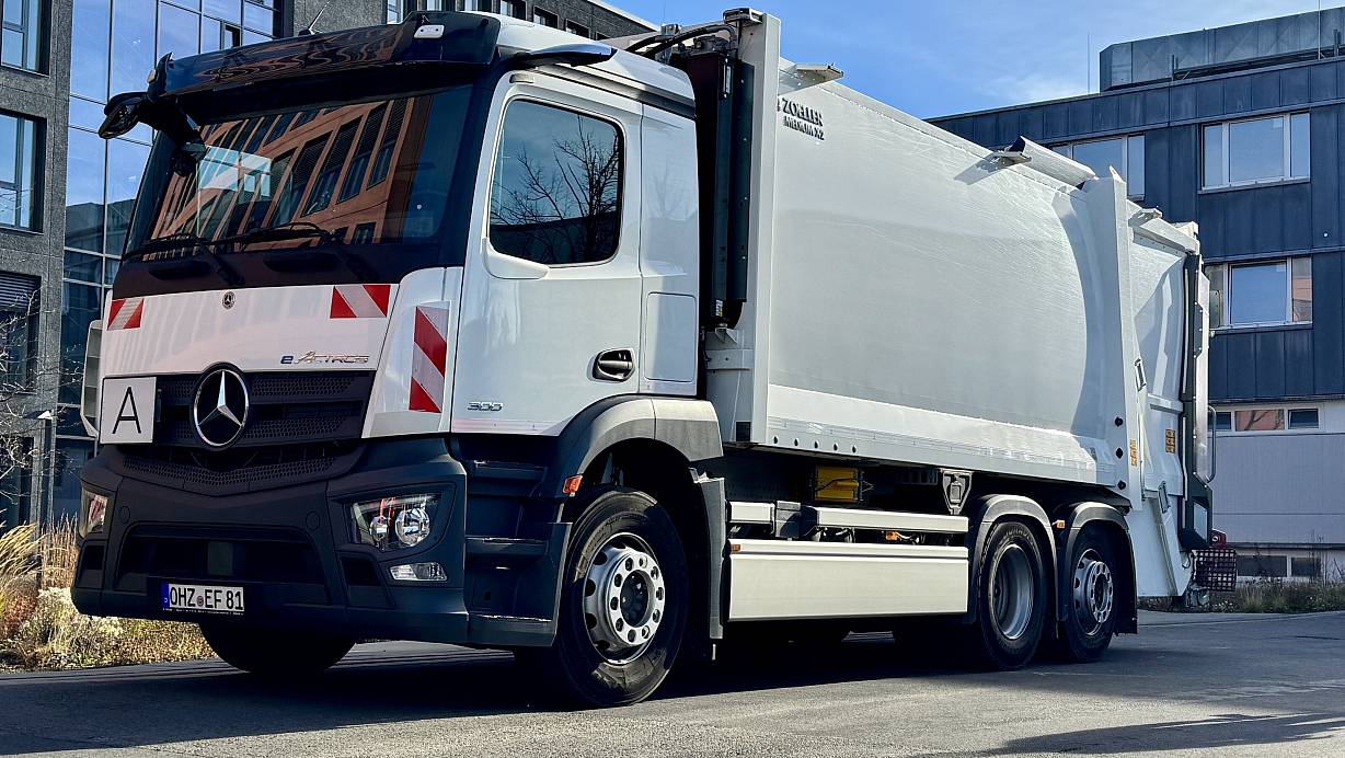Der eActros von Daimler Trucks wird in Bielefeld gestestet. Er wiegt beladen stolze 27 Tonnen – und ist trotzdem kaum zu hören. | © Peter Unger