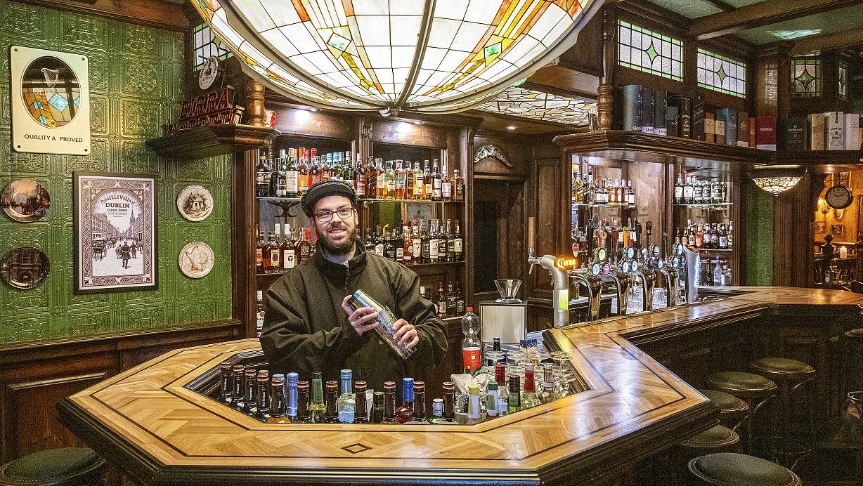 Barchef Kevin Keib hat verschiedene britische und irische Getränke aus der Flasche zu bieten. Außerdem gibt es im neuen Bielefelder Pub 14 unterschiedliche Biere und Cider vom dem Fass. | © Jörg Dieckmann