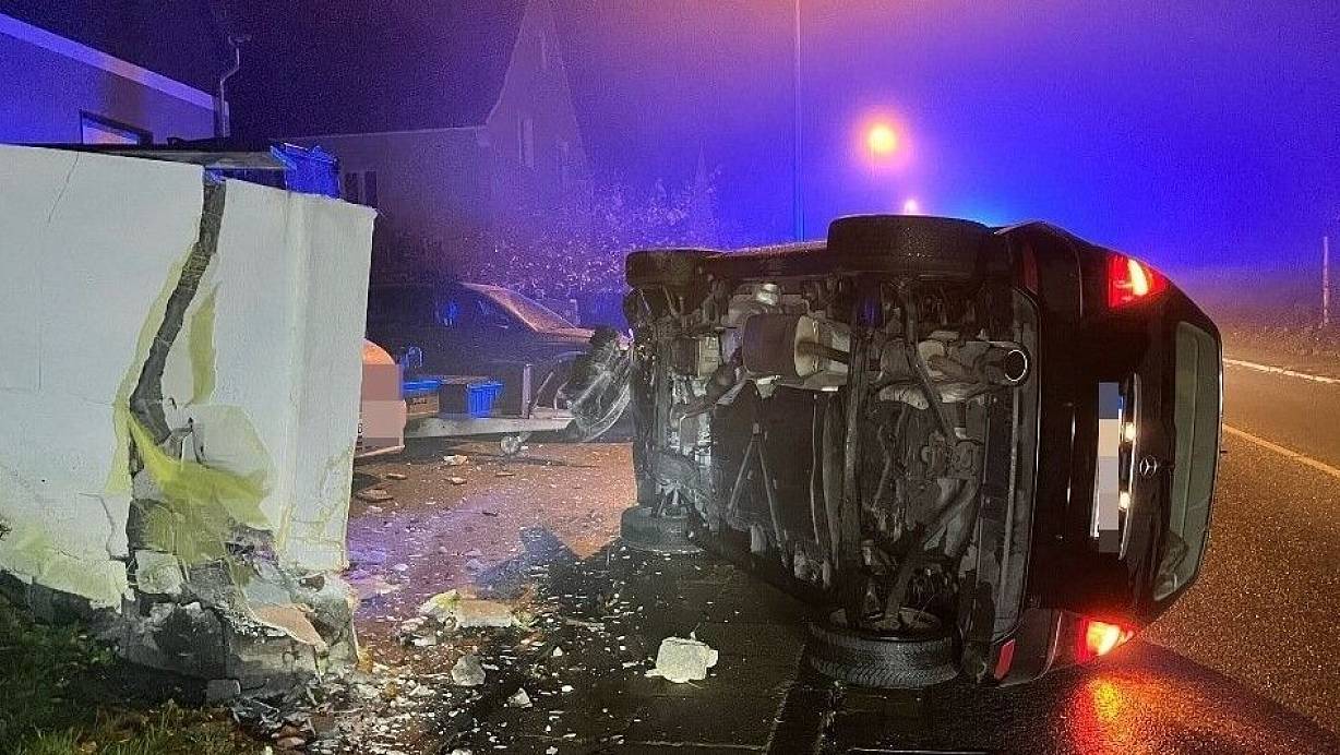 Junger Mercedesfahrer aus Bielefeld demoliert Mauer und fällt samt Auto auf die Seite