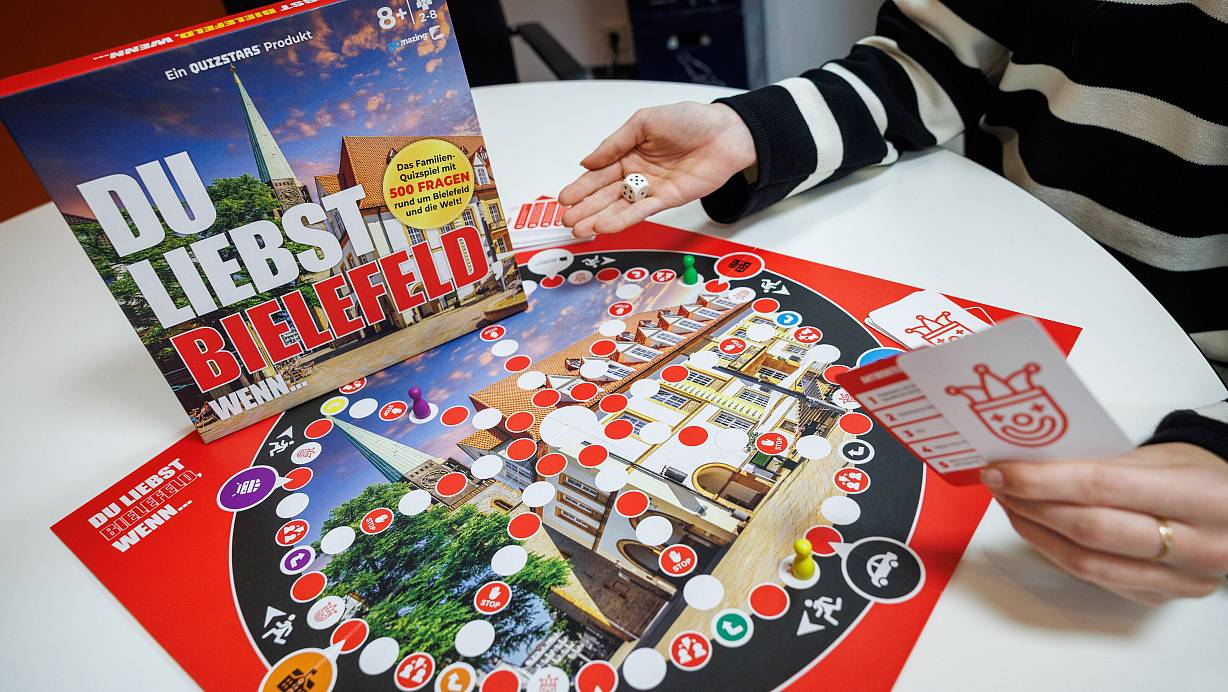 Spielszene aus dem neuen Brettspiel "Du liebst Bielefeld, wenn...", das Quiz- und Stadtwissen kombiniert. | © Oliver Krato