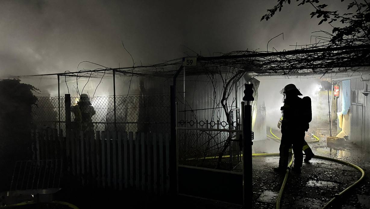 Der Brand einer Gartenlaube in Brackwede zwang die Bielefelder Bäder zum Räumen des Aquawedes. Der Qualm nebelte die Nachbarschaft komplett ein.