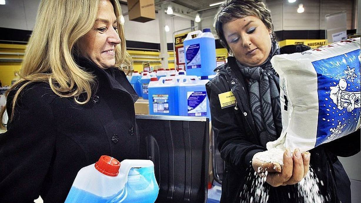 Sogar die ersten Weihnachtsbäume sind im B1 Discount-Baumarkt schon verkauft. Iris Berlin nimmt sich von den großen Paletten im Eingangsbereich noch schnell einen Sack Streusalz mit. "Der Gehweg vor unserem Haus ist nur zehn Meter lang, letztes Jahr sind wir damit ausgekommen", sagt sie. "Über eine Schneeschaufel muss ich aber noch nachdenken."