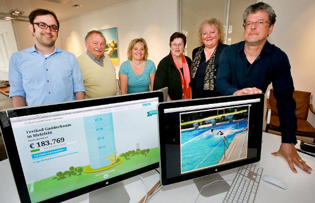 Mit ihrem Wissen und ihren Unternehmen wollen Rheingans und Wiegelmann die im Bürgerbegehren genannten 2,23 Millionen Euro für eine Teilsanierung des Bades einwerben. Seit Wochen arbeiten sie und viele ihrer Mitarbeiter an einer Internetplattform, die spielerisch einen Spendenboom auslösen soll. Jeder kann spenden – ab einem Euro.