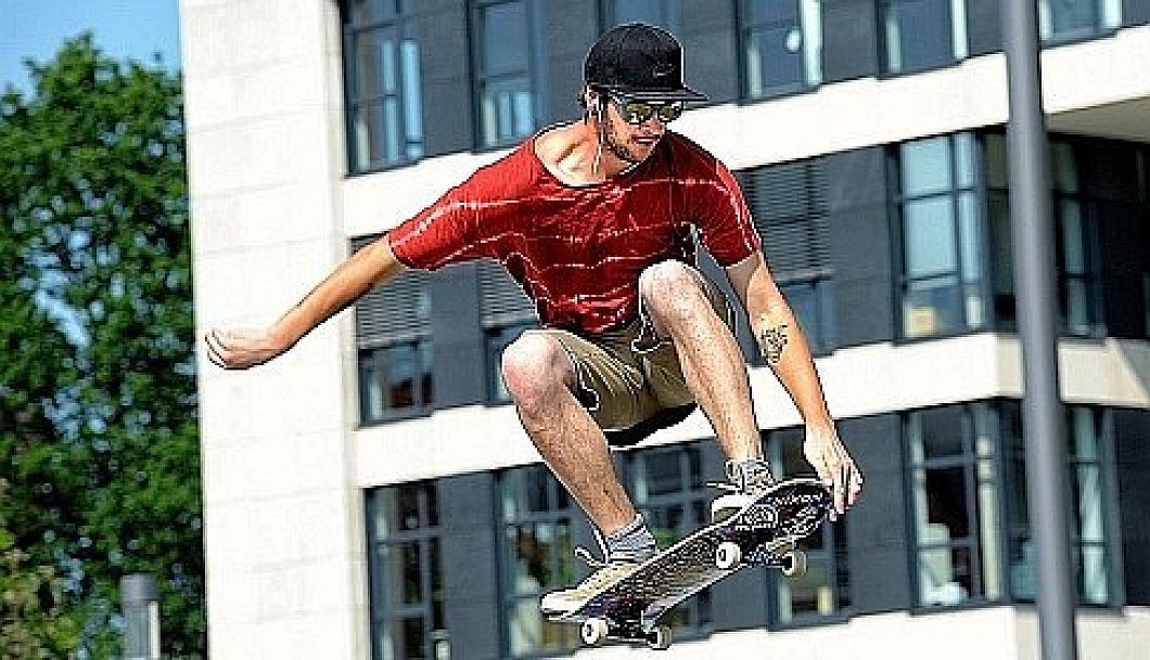 Wer sich auf einem Brett mit vier Rollen nur den Hals brechen würde, der kann sich von einer Bank aus das Spektakel ansehen. "Da bleibt einem die Luft weg", staunt Brigitte Maske. Die 70-jährige Bielefelderin und einige Begleiter gucken zu, wie die Fahrer an Rampen, Treppen und Bänken ihre Tricks wagen.