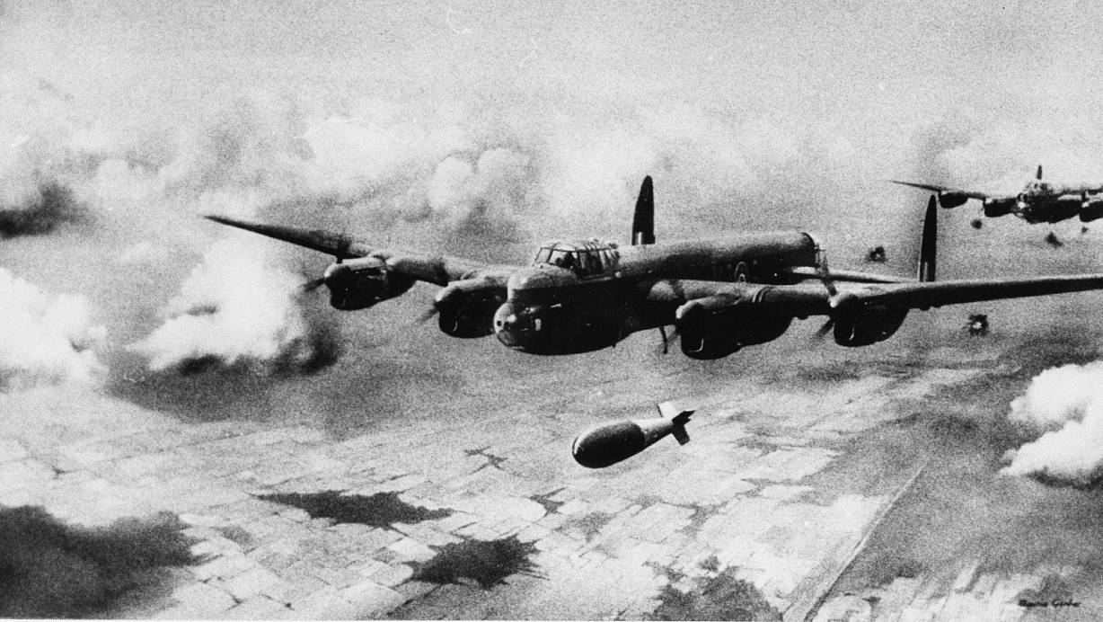 Britische „Lancaster"-Bomber im Anflug auf den Schildescher Viadukt. | © Archiv NW