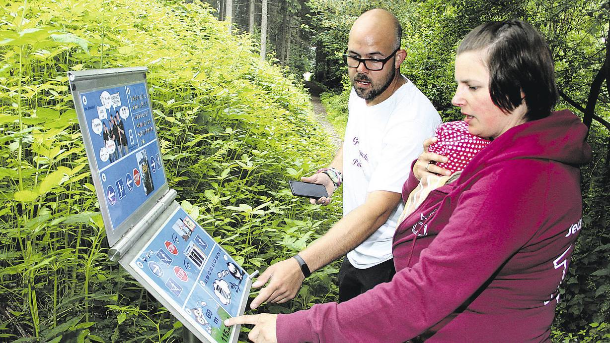 „Wer hat den Park errichtet?", „Wo ist die Heimat der Haselnuss?", „Messt den Umfang der Sommerlinde in einem Meter Höhe" lauteten einige der Aufgaben. Viele Lösungen waren auf den vorhandenen Infotafeln abzulesen. Anderes wiederum, wie die Binärzahlen auf der Rückseite der Frauenstatue, ließ sich nur mit Hilfe einer App entschlüsseln.
