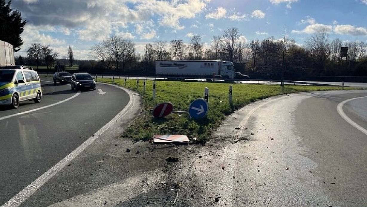 SI / Bielefeld / A 30 / Herford / Bünde - Polizeibeamte stellten am Donnerstag, 20.11.2025, einen betrunken Fahrer, nachdem er an der Anschlussstelle Bünde drei Verkehrsschilder umgefahren hatte und von der Unfallstelle geflüchtet war.