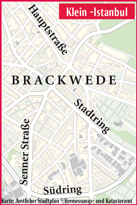Brackwede. Klein-Istanbul. Der Name lässt rätseln: Ein Kleinformat der türkischen Großstadt in Bielefeld? Kann es das geben? In Brackwede spricht der Volksmund von seinen türkischen Mitbürgern offenbar auch indirekt - wenn der Ortsbegriff "Klein-Istanbul" genutzt wird. Ein Grund dafür, dass hier jeder Dritte einen Migrationshintergrund hat (und fast 60 Prozent der Nicht-Volljährigen), sind große Unternehmen, die in den 50ern mit Arbeit lockten.