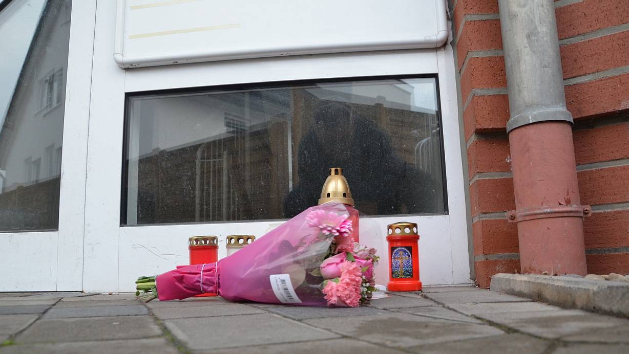 Anfang Januar: Blumen und Kerzen im Eingangsbereich, in dem die 37-Jährige Flory P. starb. | © Andreas Großpietsch