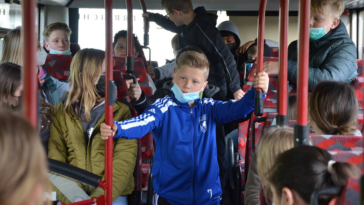 Mit Walther Bunselmeyer sind Kurvenfahrten im Linienbus spaßig. Doch eine abrupte Bremsung bringt alle wieder auf den Boden der Tatsachen. Wir haben uns das Projekt Busschule mal näher angeschaut.
