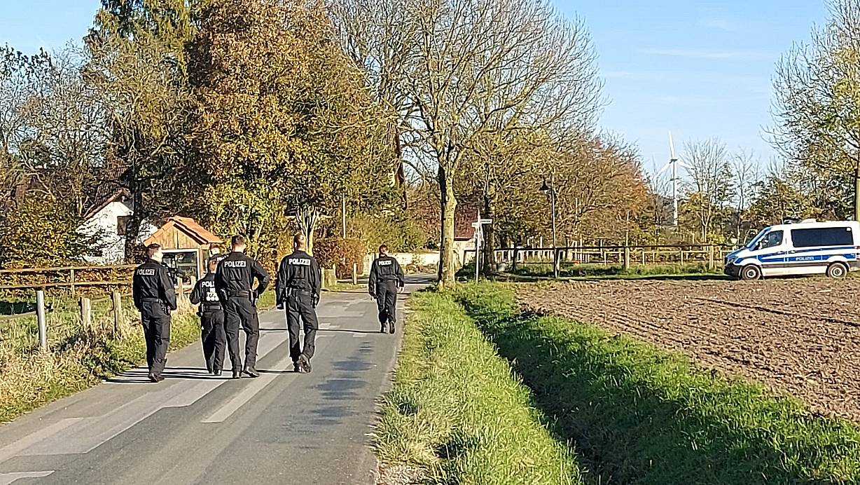 Beamte und Beamtinnen durchsuchten in Dissen die Felder auf der Suche nach dem vermissten 90-jährigen Mann aus Borgholzhausen. | © Claus Meyer