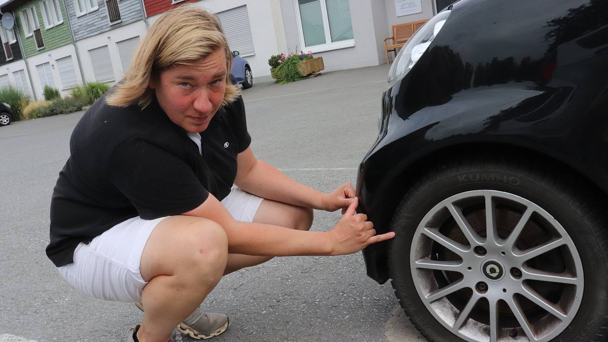 Vorderreifen – und auch Hinterreifen – des kleinen Smarts sind auf der Fahrerseite platt. Die Einstichstellen sind geschickt gewählt, musste Marina Schwarze feststellen. | © Alexander Heim