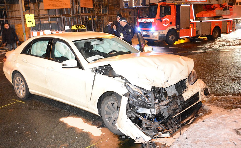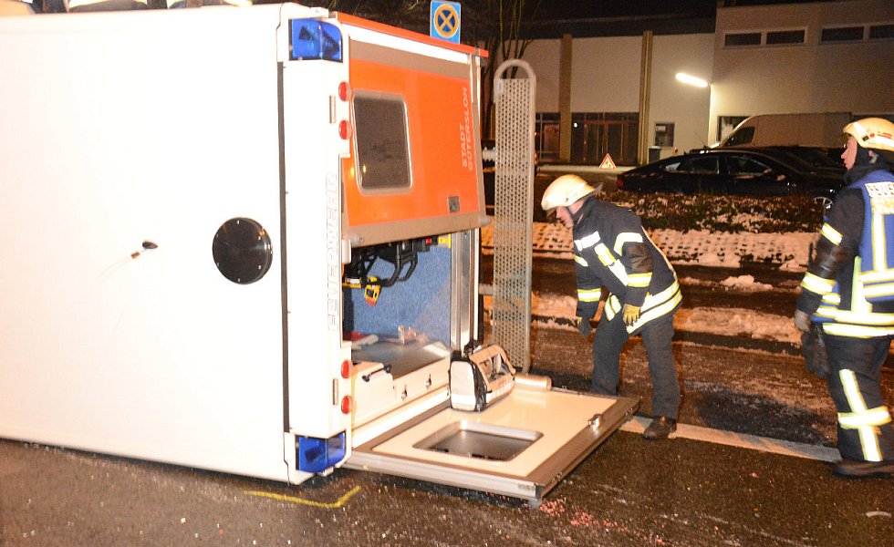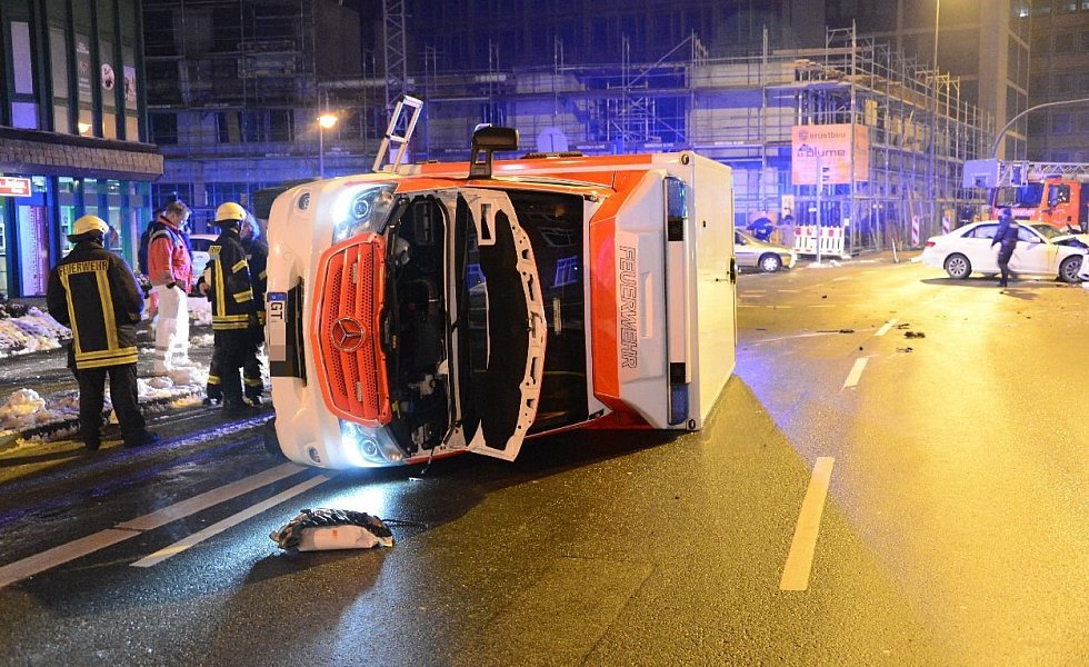 Vor der Ampel fährt der Taxifahrer an zwei Autos vorbei, die aufgrund des nahenden Rettungswagens warteten. Durch die Wucht des Aufpralls kippt der Rettungswagen auf die Seite. Der 35-jährige Taxifahrer wird bei dem Unfall leicht verletzt.