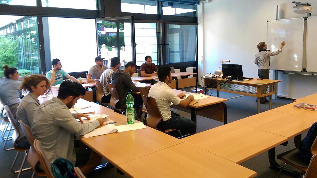 Die Stimmung ist die einer normalen Schulklasse in der Pause: Die jungen Frauen und Männer lachen, unterhalten sich und feuern sich beim Wikingerschach an. Die gute Laune ist aber keine Selbstverständlichkeit: Alle kommen aus Syrien, wo seit fünf Jahren Bürgerkrieg herrscht. Sie sind seit bis zu drei Jahren in Deutschland und haben ganz unterschiedliche Fluchtgeschichten erlebt. Bei "Be Welcome" haben sie ein gemeinsames Ziel: ihren Weg ins Arbeitsleben in Deutschland zu finden.
