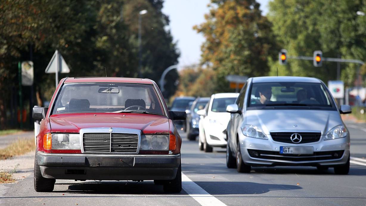 Seit Tagen gammelt der weinrote Mercedes am Rand der Verler Straße vor sich hin. | © Patrick Menzel
