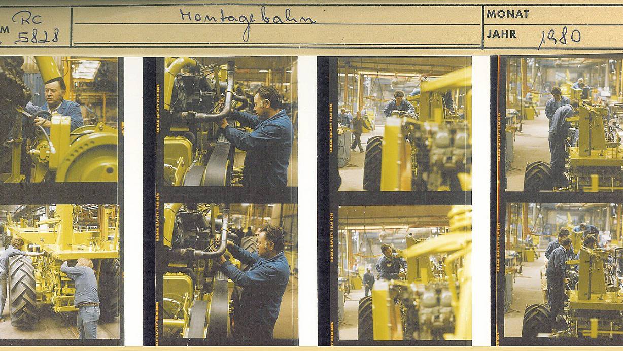 Technik aus Harsewinkel im Visier: Dieses Portfolio aus dem Claas-Archiv zeigt die Montage eines Feldhäckslers im Jahr 1980. | © Claas