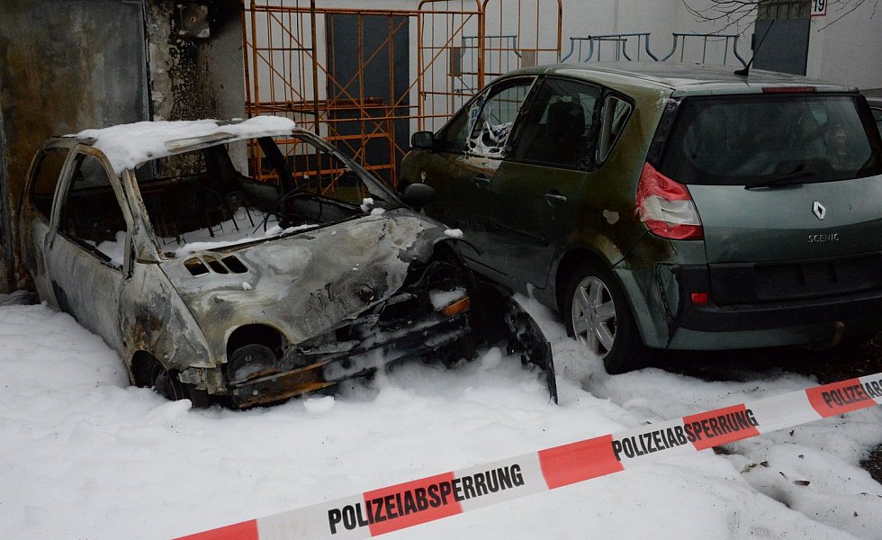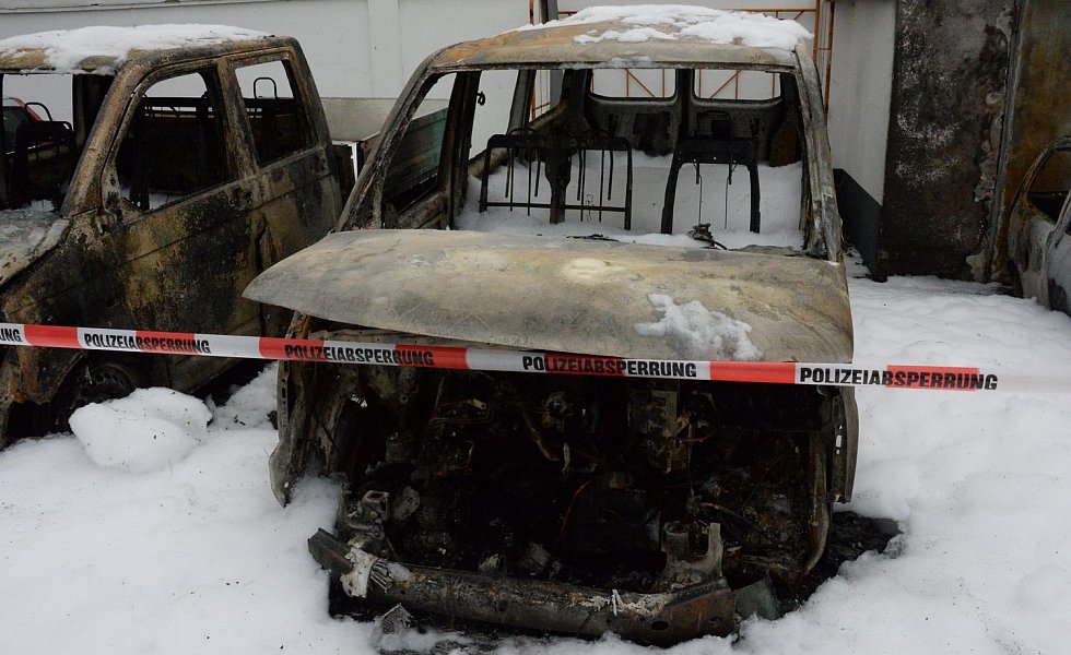 Die Feuerwehrleute löschten mit drei C- sowie einem Schaumrohr die drei Pkw und verhinderten das Übergreifend er Flammen auf ein Lagergebäude. Hier hatte die Brandmeldeanlage bereits während der Anfahrt der ersten Kräfte bereits Alarm ausgelöst. Durch die schnellen und intensiven Löscharbeiten konnte der Gebäudeschaden auf den Außenbereich des Eingangs begrenzt werden.